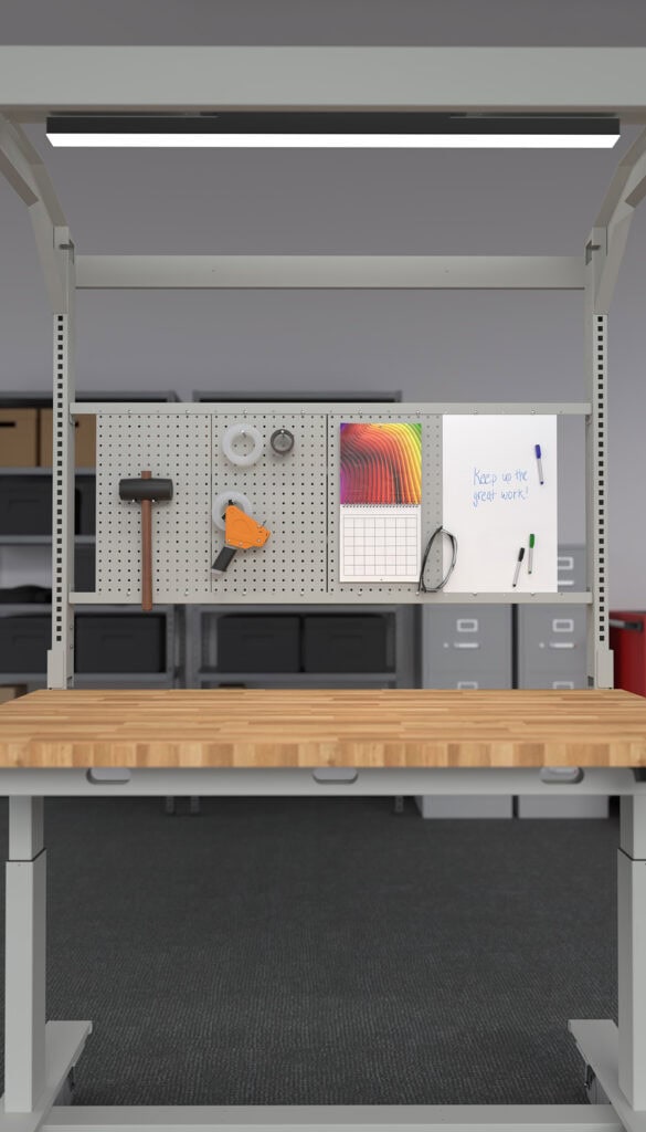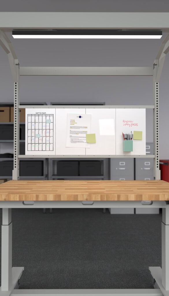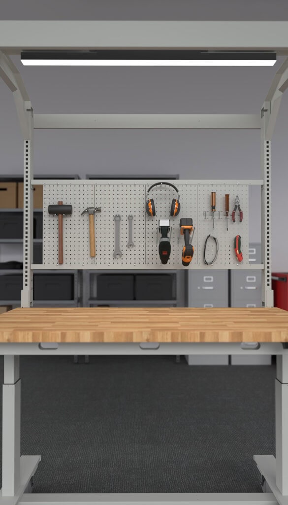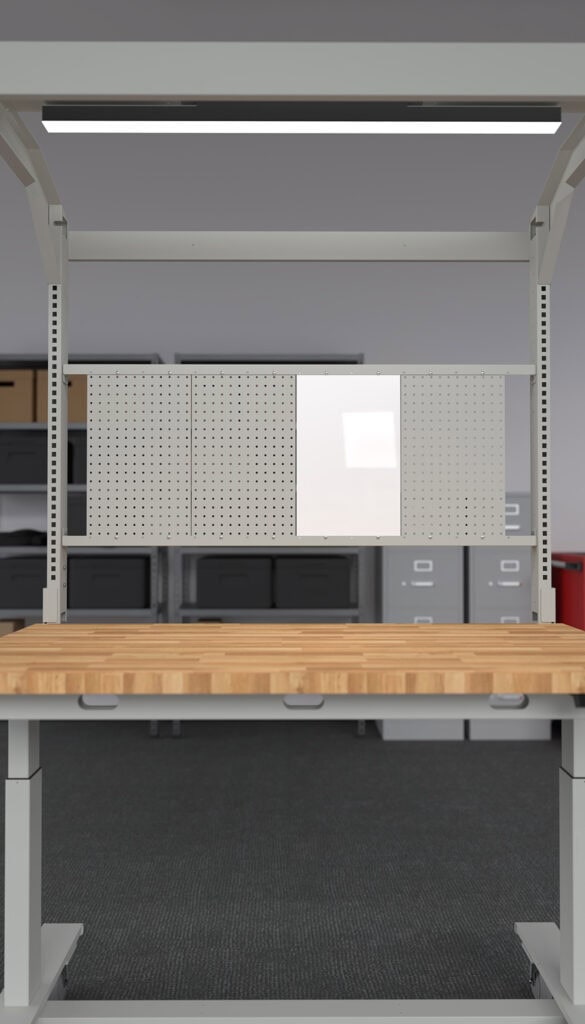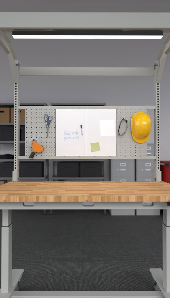 Create a layout that keeps tools, notes, and ideas within reach. Our modular system allows for a variety of combinations: pegboards keep your tools organized and accessible, while whiteboards offer magnetic, dry-erase surfaces for notes, schedules, and visual reminders. Choose both for maximum versatility and rearrange them as your needs change.