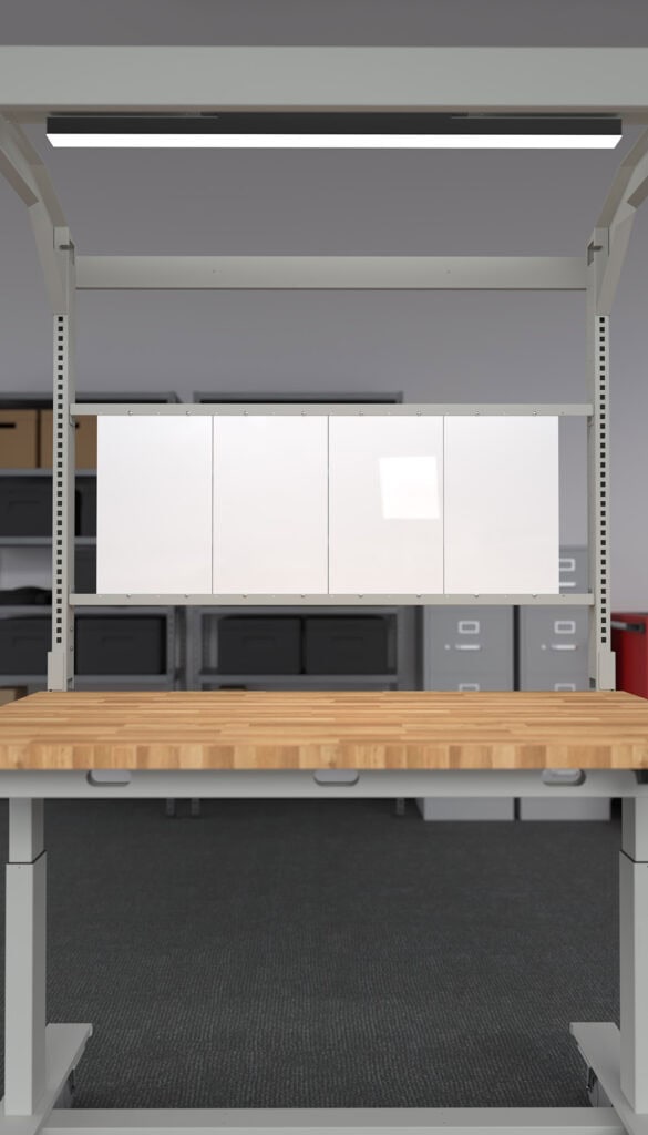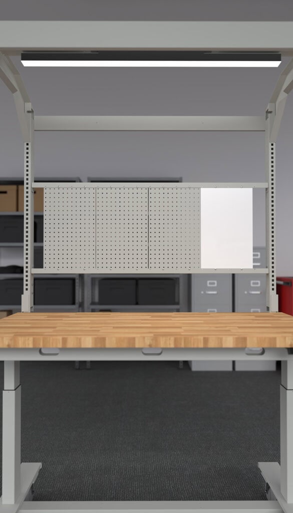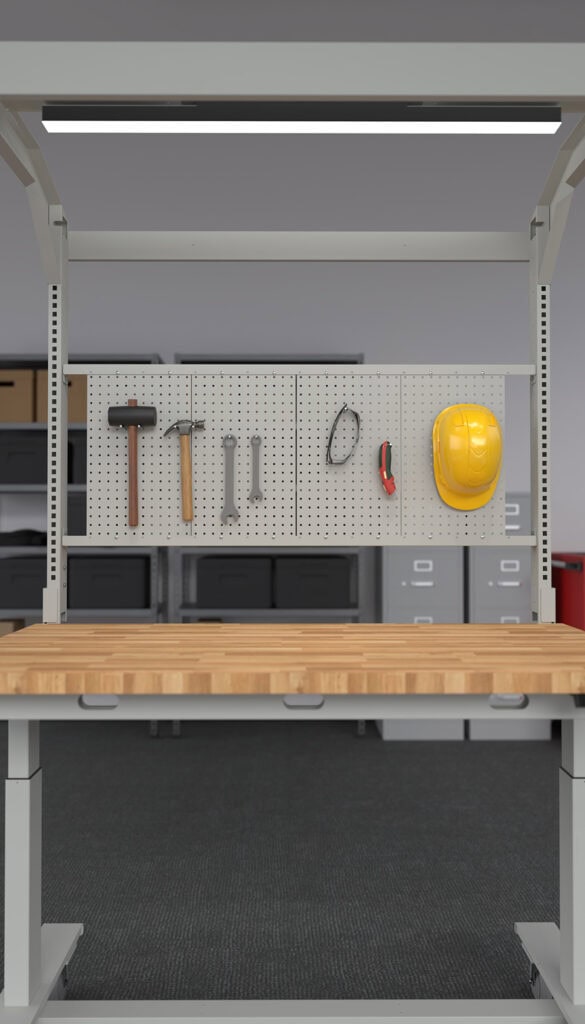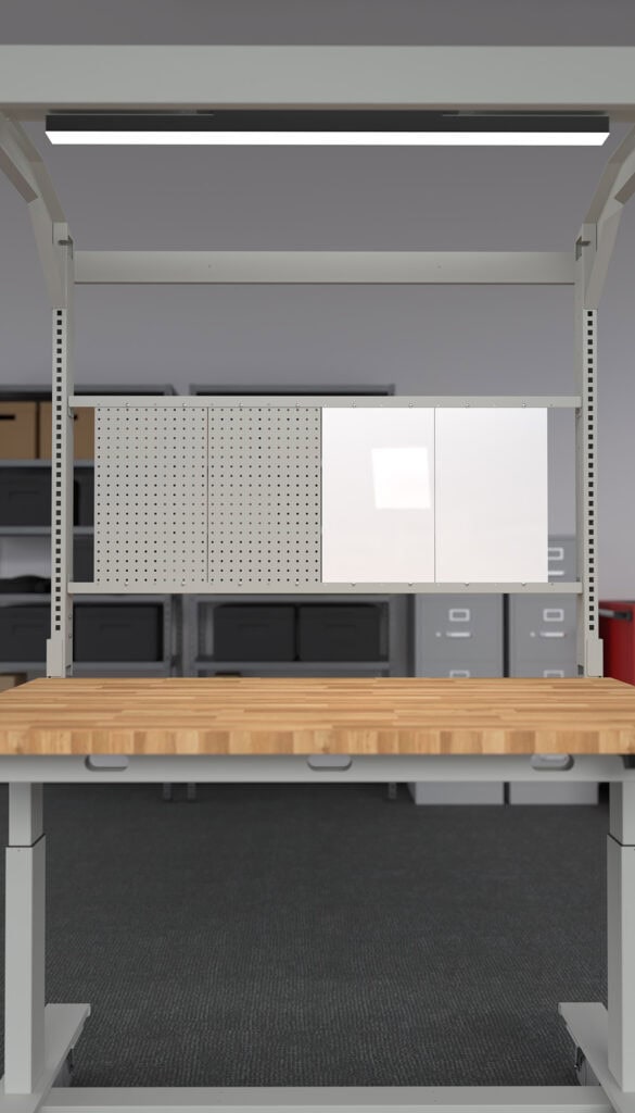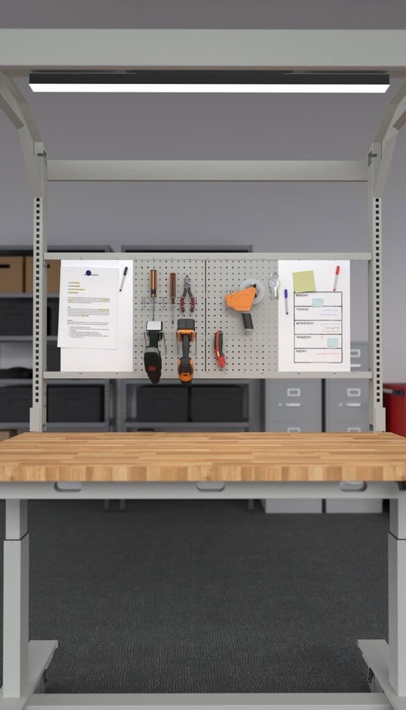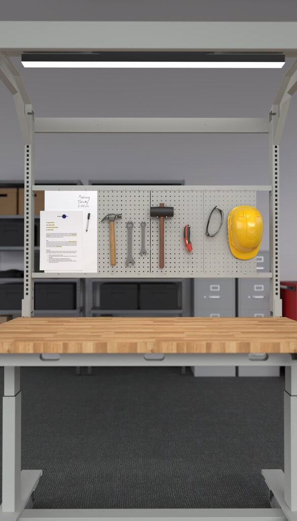 Create a layout that keeps tools, notes, and ideas within reach. Our modular system allows for a variety of combinations: pegboards keep your tools organized and accessible, while whiteboards offer magnetic, dry-erase surfaces for notes, schedules, and visual reminders. Choose both for maximum versatility and rearrange them as your needs change.